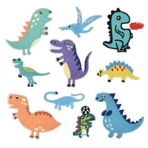 【10個お得セット】大人気な恐竜ワッペンセット、10種類の恐竜があり(立体感と光沢が有り高級なイメージ)【幅広い用途】Tシャツ、ジーンズ、タオル、毛布、バッグ、帽子、手帳などの飾り、服や小物の傷や裂けた部分としみがある部分