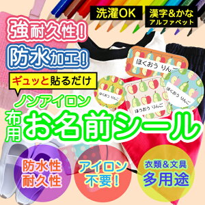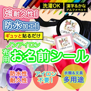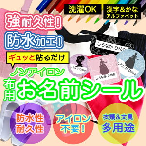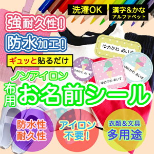 【商品について】 入園入学のお名前つけに便利なお名前シールです。 指でぎゅっ!と押さえて貼るだけ、アイロンは不要です。 洋服のタグや表面が平らで伸び縮みしない素材に使用可能です。 【...