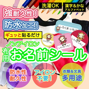 ひらがな・カタカナ・漢字・ローマ字に対応!使い方いろいろ!貼るだけカンタン♪・アイロン不要!洋服やタオル、ハンカチのタグにぎゅーっと押さえるだけで簡単に貼り付けることができます。・耐水素材を使用しているため...