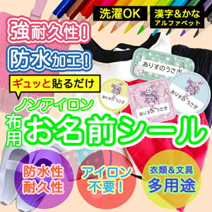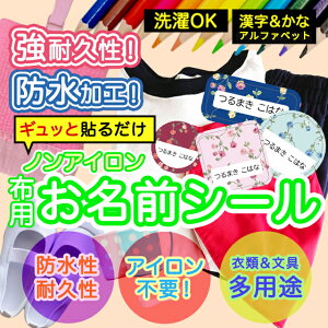 【商品について】 入園入学のお名前つけに便利なお名前シールです。 指でぎゅっ!と押さえて貼るだけ、アイロンは不要です。 洋服のタグや表面が平らで伸び縮みしない素材に使用可能です。 【...