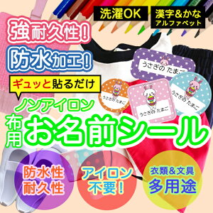 【商品について】 入園入学のお名前つけに便利なお名前シールです。 指でぎゅっ!と押さえて貼るだけ、アイロンは不要です。 洋服のタグや表面が平らで伸び縮みしない素材に使用可能です。 【...