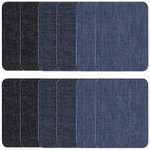 デニムパッチ 補修パッチ アイロンパッチ 長方形 約9.5cm×12.5cm 3色12枚セット ジーンズ リペア 補修布 デニム 補修シート アイロン接着 貼付パッチ 布製 衣類 服の補修に DIY 手芸...