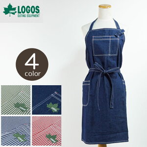 男女兼用で使えるロゴスブランドのデニム生地のキッチンエプロンです。首掛けタイプで、結ぶ位置で長さを調整できます。左右にポケットがあります。自宅ではもちろん、アウトドアで