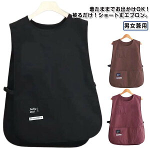 着たままでお出かけOK!被るだけ!ショート丈エプロン。作業の邪魔にならずに動きやすいショート丈。両脇開きバックルタイプ、動きの邪魔になりにくく、サイズ調整可、着脱便利。撥水、防汚加工で汚れがつきにくく...