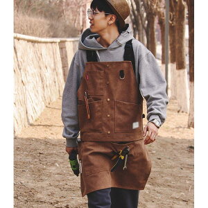 男女兼用ワークエプロン。日常撥水加工がされたキャンバス素材のエプロン。ポケットは胸元や腰部分など合わせて3つも付いており、それぞれ異なるツールで分類できるので非常に便利です。キッチンやガーデニングでも大活躍...