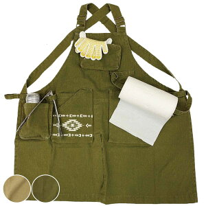 「エプロン・特徴」 キッチンだけでなく、ガーデニングやDIY・仕事用など様々な場面で活躍する多機能ポケット。キャンプやバーベキューなどのアウトドアでも使用できる機能性とデザイン。「複数のポケット付き」...