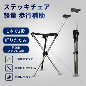ステッキチェアは軽量で杖にも、折畳み式の三脚の椅子にもなるので便利です。歩くときは折りたたんで杖として、休む時はイスとして使用できます。しっかりと握りやすいグリップ形状の持ち手付きです。軽量・コンパクトなので...