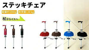 耐荷重は150kgで、長期間使用しても変形しにくく、高い耐久性を実現しています。 【2役兼用機能】ステッキチェアは、杖と椅子の2WAYで活躍。1本で2通りの使い方ができ