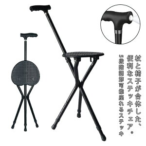 ステッキチェア 折りたたみ杖 超軽量 登山杖 アルミ製 杖 椅子 アウトドア スティック 座れる つえ 滑り止め 高齢者 歩行支援 旅行 遠足 スポーツ観戦 ゴルフ 黒 ブラック