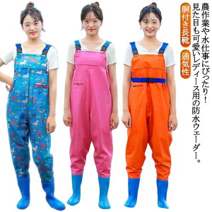農作業や水仕事にぴったり!見た目も可愛いレディース用の防水ウェーダー。チェストハイタイプで水や泥の侵入を徹底ガード。魚の掬い作業、田植え、水産業など幅広く活躍します。雨の日でも疲れにくい軽量設計。長時間着用しても蒸れ