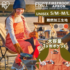 【ファイヤープルーフエプロン】[多機能ポケット/難燃/スマートフォン入れ]難燃素材でキャンプ、アウトドア、DIYに大活躍。ポケットは合計7個付き。ガーデニングにも使える多機能エプロン。スカート前はセンタースリットが入ってい