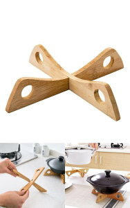 ?【特徴】コンパクトになるおしゃれな木製の鍋敷きです。また、テーブル面から鍋底までの高さを少し設けることができるので、テーブル面への熱のダメージを防ぐことができます。 ?【2パターンの使用方法】平たい面と窪みがある面があるので...