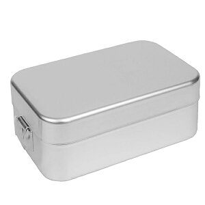 サイズ/約幅10.8×奥行16.7×高さ5.5cm ハンドル:約15cm 重量/約185g 容量/約600ml 内容量/1個 材質/本体・フタ:アルミニウム合金(板厚1mm) 止め具・ハンドル:ステンレス ハンドル