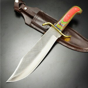 木材グリップ Bowie knife特徴的なカラーリングの木製グリップ様々なバリエーションのアウトドアナイフを製造するメーカー「Sawmill Cutlery」。ブレード全面に細かく溝が彫られている、...