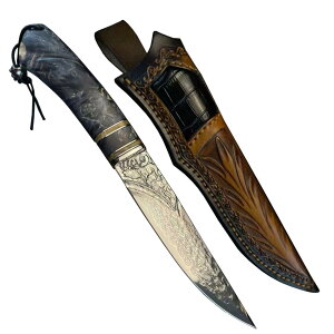 ■全長:225mm ■刃長:110mm ■刃厚:304mm ■ブレード材:VG-10コアダマスカス鋼15層 ■ハンドル材:G-10 ■革シース付。 ■キムン カムイは、アイヌ語で山の神 ヒグマの意味です...