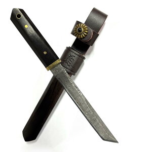 【仕様】サイズ:全長263mm/刃長約140mm/刃幅約34mm/刃厚約5mm。材質:刃材 67層ダマスカス鋼/芯材 V金10号/硬度60±2HRC/鍔金 ステンレス鋼/柄材 天然黒檀。内容物:革シース。...