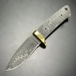 ナイフメイキング 固定刃 ナイフ作り高級感のあるダマスカス鋼素材のナイフメイキング用ブレードオリジナルのハンドルを自作して装着できるナイフメイキング用のブレード。汎用性の高いドロップポイント形状のブレードは強靭で錆びに