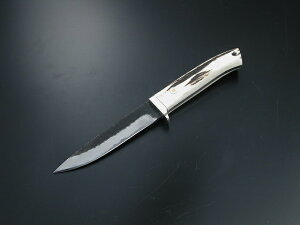 ■詳細・サイズ ■刃長/全長/刃形:105/230/両刃 ■厚み/重量/鋼/表面/輪:24/4/青2/黒槌/ニッケルシルバー ■柄/鞘:スタッグ/手縫い皮ケース ■納期について ※製作に一ヶ月〜二ヶ月かかる為、予約販売となります。...