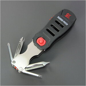 マルチツール 携帯工具 スイステック4種のドライバーとLEDライトが付いたスイステックのマルチツール4種のドライバーとLED懐中電灯がついた、スイステックのマルチツール トランスフォーマー 6in1。端のボタンを押すことでロックが外れ2段