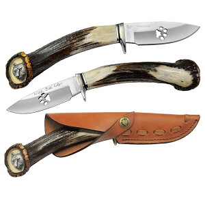 ■全長:258mm ■刃長:90mm ■ブレード材:ステンレス ■ハンドル材:スタッグ ■皮シース付 ■ブレードには、狼の足跡方に穴があいています。 ■ハンドルのエンド部分には狼のメタルが埋め込まれています。 ■1000本の限定商品です。