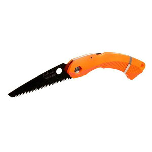 ポケットに入るコンパクトサイズの鋸、収納時は145mm、重さ70gと軽量でポケットに入れて持ち運びに便利。刃はプロの剪定士が愛用する剪定刃を採用。軽く枝を切断できます。また、刃に空いた丸い穴(サムホール)に指をかけることで片手