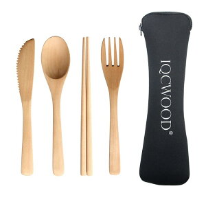カトラリー スプーン 箸 フォーク ナイフ 収納袋 5点セット 木制 軽量 小さい 携帯便利 キャンプ アウトドアカトラリーセット