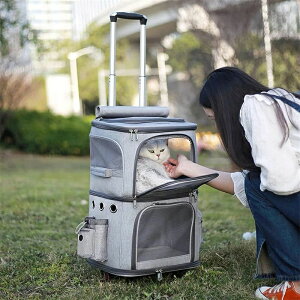 送料無料二層トロリーバッグ折りたたみ可大容量 安定性 小型犬 猫 小動物 リュック キャリーカート4way 散歩 通院 避難用 ドライブ リュック 折りたたみ通気性車載/