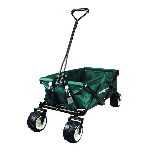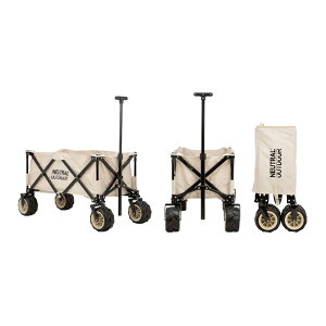 ※北海道・沖縄へは発送できません、ご注文はキャンセルになります。 キャンプサイトで荷物を運ぶのに便利な、折りたたみ式キャリーカート。極太タイヤを採用し、個性的なルックスと荒れたキャンプ地でもスムースに移動できる抜群の走