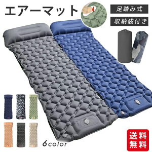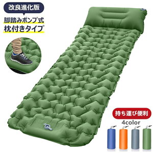持ち運び便利です。 【枕一体型デザイン】枕付きの一体化したデザインで、使用は便利で寝心地抜群です。 【足踏み式】エアーマットは足部にエアーポンプを内蔵しており、工具は必要なく、足でポンプを押すだけで簡単に膨らませることができます...