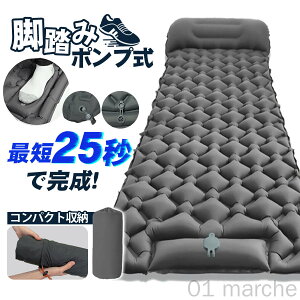 持ち運び便利です。 【枕一体型デザイン】枕付きの一体化したデザインで、使用は便利で寝心地抜群です。 【足踏み式】エアーマットは足部にエアーポンプを内蔵しており、工具は必要なく、足でポンプを押すだけで簡単に膨らませることができます...