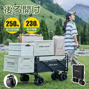 キャリーワゴン【 大型タイヤ 150L大容量 長物対応 】自立収納 耐荷重120kg ワンタッチ収束式 後部展開可 折り畳み アウトドアワゴン キャリーカート キャンプカート 花見・釣り・運動会・BBQ...