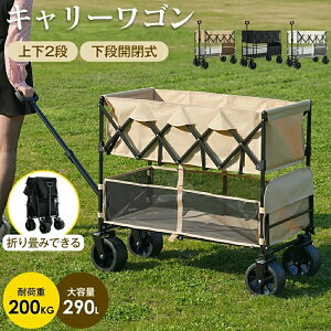 梱包重量:7.2 キログラム 製品特徴 【100L〜200Lの可変容量設計でキャンプに最適】 この折り畳み式キャリーワゴンは、特許取得の独自設計により100Lから200...