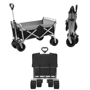 「両手ハンドルタイプあり」アウトドアワゴン キャリーワゴン テーブルセット キャリーカート 大容量 折りたたみ 頑丈 コンパクト 耐荷重500kg 大型タイヤ 4輪