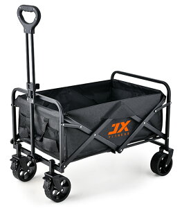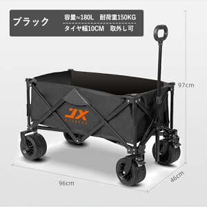 商品仕様 製品名: 折りたたみ式アウトドアワゴン ブランド名: JX-fitness 展開サイズ: L70cm x W43cm x H80cm 車輪素材: PVC、PP 荷重: 200kg 容量: 100L