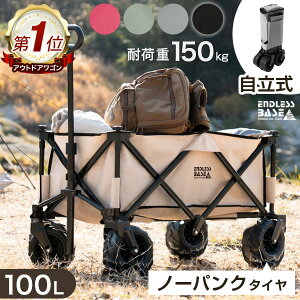 自立OK 折畳式 ノーパンク 大型タイヤ キャリーワゴン マルチワゴン 100L 折り畳み アウトドアワゴン フォールディング コンパクト フェス ピクニック 運動会 ソロキャンプ オシャレ