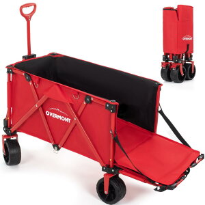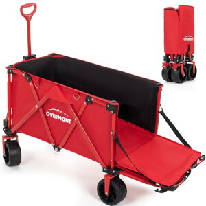 Overmont キャリーワゴン 大型タイヤ 150L大容量 長物対応 自立収納 耐荷重120kg ワンタッチ収束式 後部展開可 折り畳み アウトドアワゴン キャリーカート キャンプカート 花見・釣り...