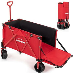 Overmont キャリーワゴン【 大型タイヤ 150L大容量 長物対応 】自立収納 耐荷重120kg ワンタッチ収束式 後部展開可 折り畳み アウトドアワゴン キャリーカート キャンプカート 花見・釣り...