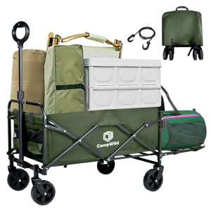 CampWild アウトドアワゴン 折りたたみ キャリーワゴン 自立収納式 後ろ開けキャンプワゴン 長物対応 容量が30%増加 耐荷重120kg コンパクト大容量 オックスフォードタープン アウトドア...
