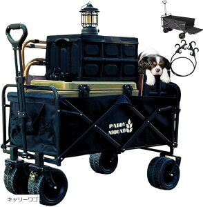 ジャーナリスト推奨 大容量300L 極太10cm タイヤ キャリーカート キャリーワゴン カート アウトドア ワゴン 長物対応 自立 コンパクト 収納 台車 キャンプブランドPADDY MOUNDカ...