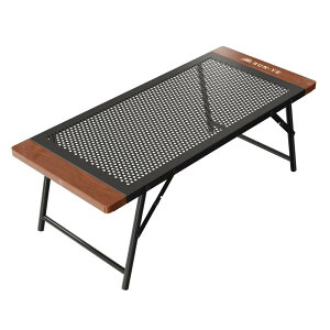 折り畳み キャンプテーブル アウトドア メッシュデザイン 木製エッジ 焚き火 コンロ置き クーラーボックススタンド対応 専用収納袋付き(ブラック 1個)【仕様・寸法】材質:炭素鋼 (粉体塗装)、質量:2.5...