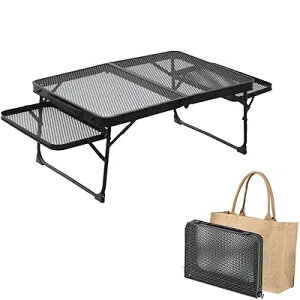 キャンプ テーブル アウトドアテーブル サイドテーブル付き メッシュ 軽量 折りたたみテーブル コンパクト ローテーブル ミニテーブル 耐熱 耐荷重40kg BBQ 登山 バーベキュー キャブランド:多機能...