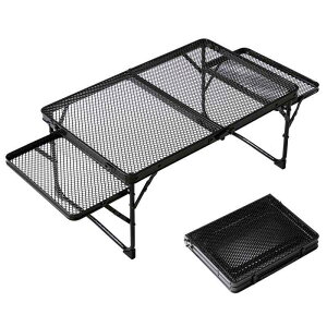 TIMBER RIDGE キャンプ テーブル アウトドアテーブル サイドテーブル付き メッシュ 軽量 折りたたみテーブル コンパクト ローテーブル ミニテーブル 耐熱 耐荷重40kg BBQ 登山 バーベキュー...