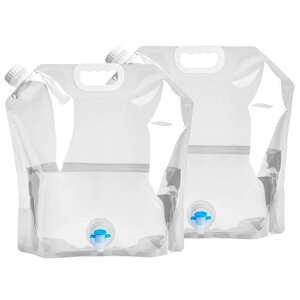 【商品内容】給水袋*2個セット(蛇口付き)、容量:約10L。アウトドアや非常時に備え、安心して水を携帯できます。 【使いやすい】ネジ式キャップで簡単注水、ネジ式キャップだから水漏れせず、注入口は水の注入、注ぎ出しが共にしやすい適