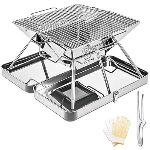 AMITSUNTOP 焚き火台 バーベキュー コンロ BBQ グリル 卓上コンロ 屋外での焚き火 コンパクトな折りたたみ収納ステンレス鋼 収納袋付き