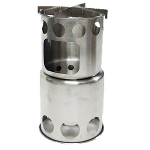 小型ネイチャーストーブ 枯れ枝などの自然燃料を使用して使え アウトドアの醍醐味を味わえる ソロキャンプやツーリング向け小型仕様 二次燃焼構造 煙突構造と二次燃焼孔があり 高い燃焼効率が期待できます 少量の燃料で十分な火力を得ら