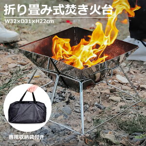 バーベキューコンロ 焚き火台 収納ケース付 アウトドアコンロ 折りたたみ BBQコンロ 1台2役 2-4人用 ステンレス サイズ:31CM×31CM×20CM キャンプ用品 アウトドア用品 (ノーマル)【お手軽組み...