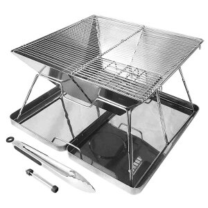 AMITSUNTOP 焚き火台 バーベキュー コンロ BBQ グリル 卓上コンロ 屋外での焚き火 コンパクトな折りたたみ収納ステンレス鋼 収納袋付き