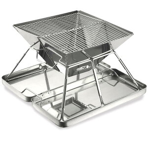 焚火とバーベキューが楽しめる1台2役のファイアグリルです。 錆びにくく丈夫なステンレス製です。 薄型なのでコンパクトに収納できます。 便利なキャリーバック付き。 ネジ不要で、ス...