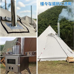 【耐熱304ステンレスでテントを完全保護】 高温の煙突熱(最大800℃対応)からテント生地を守る専用ガードを採用。3層構造(断熱シリコン層+ステンレスメッシュ+反射アルミ板)で熱伝導を抑制し、火災リスクを軽減...