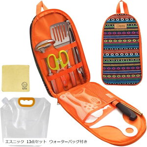 gf商品名キャンプ 調理器具セット 高ステンレス製 バーベキュー アウトドア キャンプ用品 セット 清潔な 樹脂製 まな板 包丁セット クッキング キッチンツール エスニック 13点セット ウォータ...